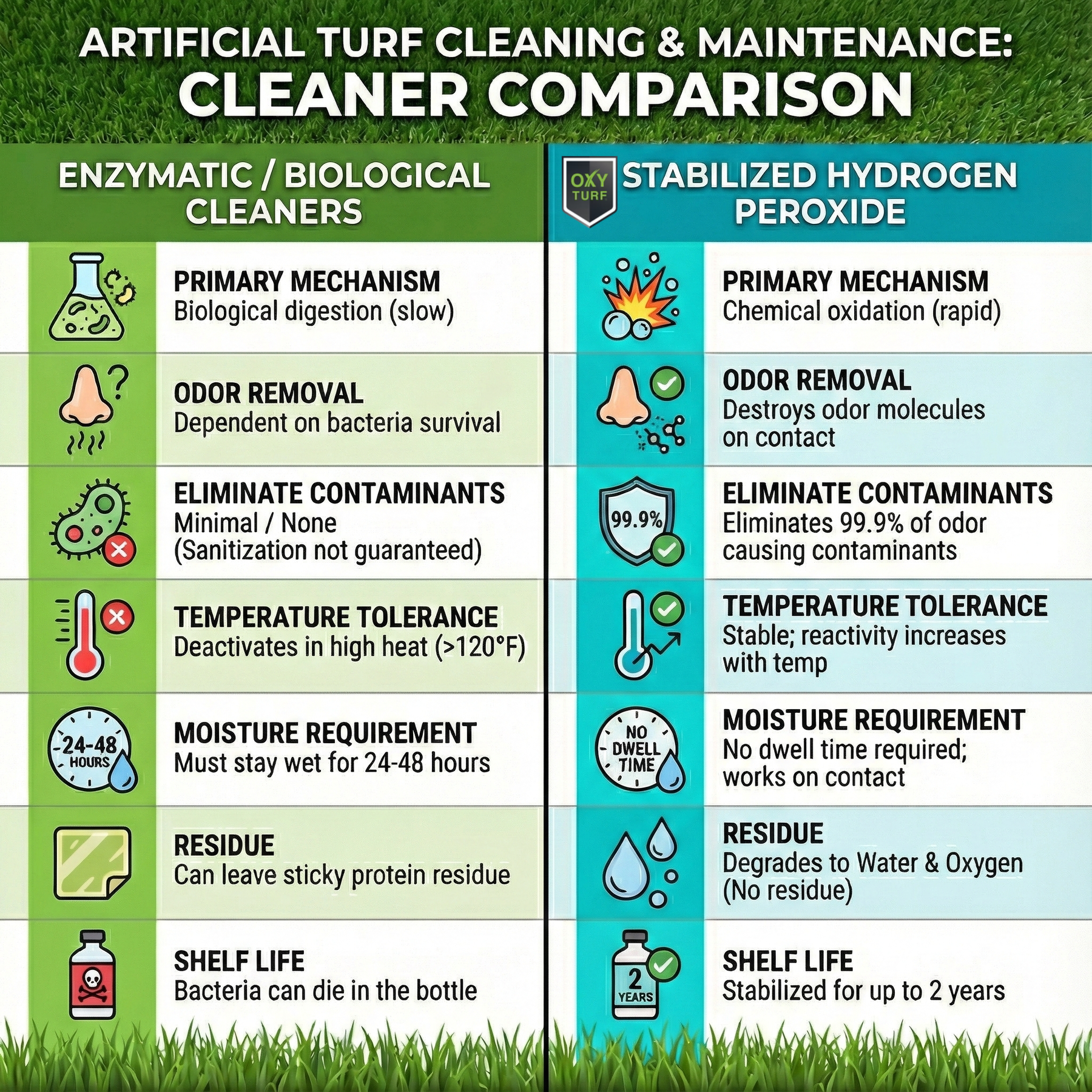 Designed Specifically as a one-step, non-acid, ready-to-use, non-abrasive, synthetic turf cleaner & deodorizer. Removes grease & grime. Eliminates 99.9% of harmful contaminants, odors and stains. Starts working on contact!
